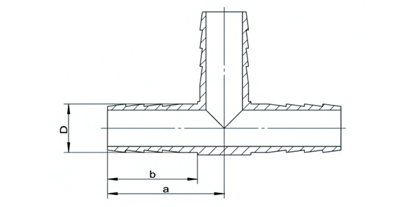 Es gibt viele Widerhaken auf der Oberfläche der Stachel -T -Shirt -Anpassung. Wenn sie an allen Enden mit dem Schlauch verbunden sind, erzeugt die Stachelbalte eine enge Dichtung auf dem flexiblen oder halb-rigiden Schlauch. Der Zweck dieses Entwurfs ist es, den Schlauch in die Hauptlinie beißen zu lassen, um ein Rutschen zu verhindern.